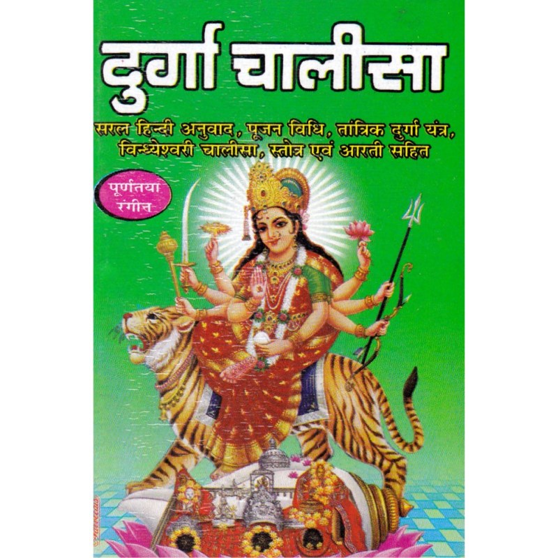 The Chalisa of Goddess Durga available in colored pages along with Hindi translation.