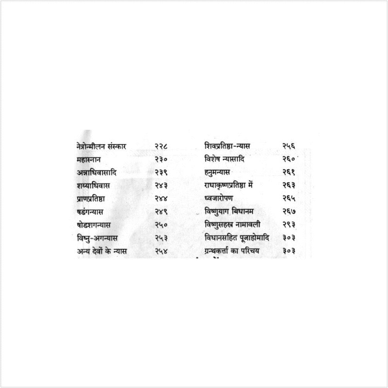 Saral Sarva Deva Pratishtha is inclusive of Vishnu Yagya, Pran Pratishtha (A ritual of consecration in which the consciousness or power of the deity is brought into the image awakens the icon in a temple). Coloured pictures of Mandala Chakra. The book is written by Pt. Dharnidhar Shastri.