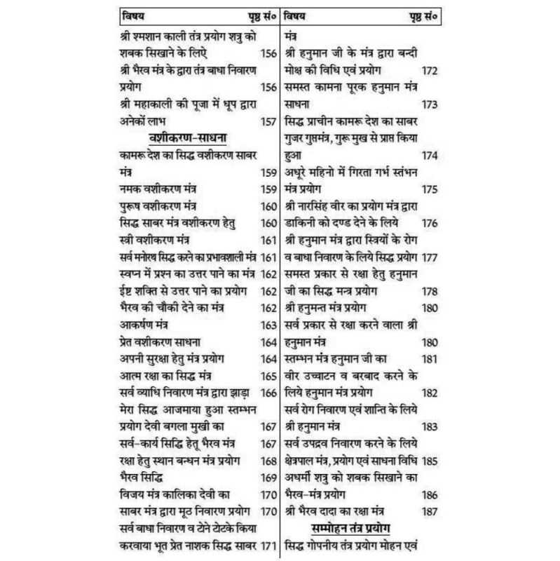 The Mantras Khand has Mantra for Bawan Veer, Bhairav Ji, Hanuman Ji, Maa Kali, Bhoot-Pret se Raksha, Utaara, Vashikaran, Stambhan, Sammohan, Kamru Desh, Shatru Badha Nivaran, etc.