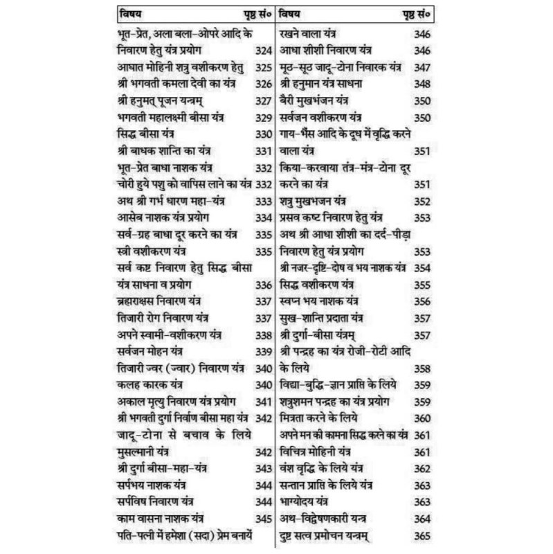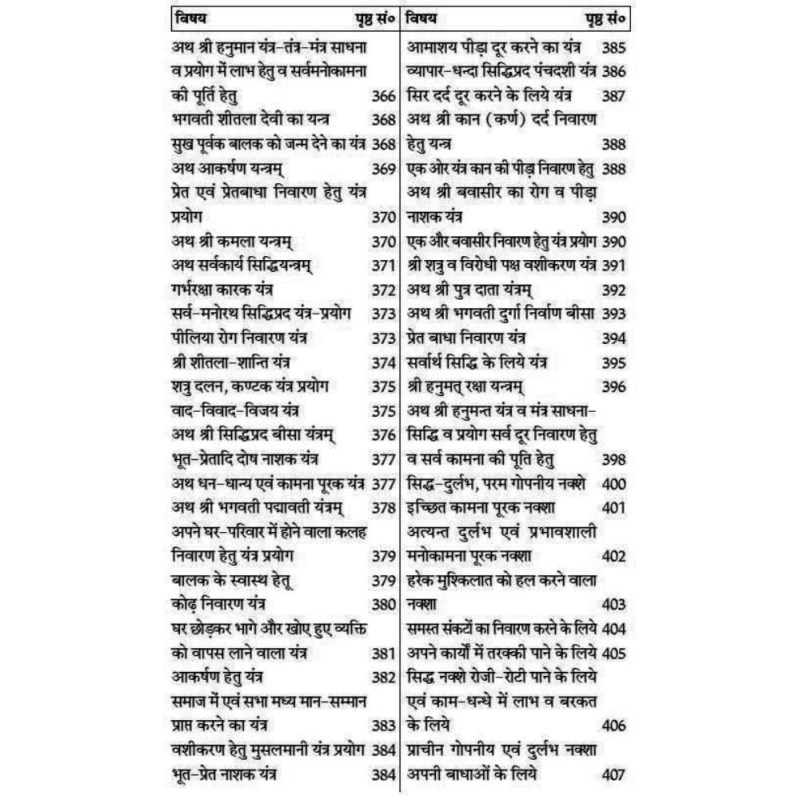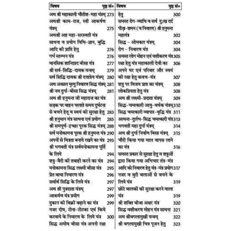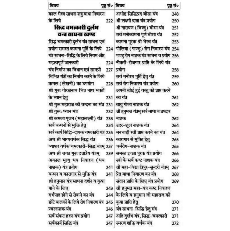 The Yantra Khand has Shri Kamla Pujan Yantra, Manokamna Purna Yantra, Lakshmi Data Yantra, Rog Nivaran Yantra, Jwar Nashak Yantra, Udar Shool Nashak Yantra, Vyapar Vriddhi Yantra, Maa Durga Yantra, Shakti Beejakshar Yantra, etc.