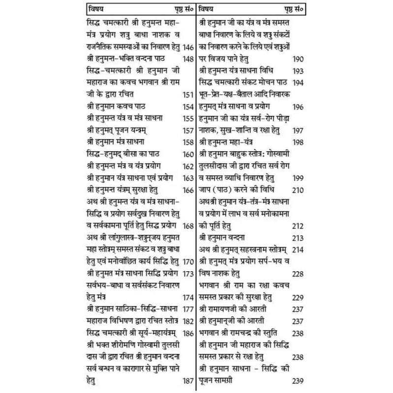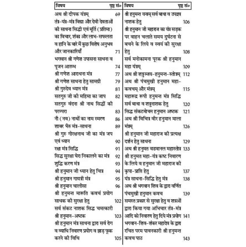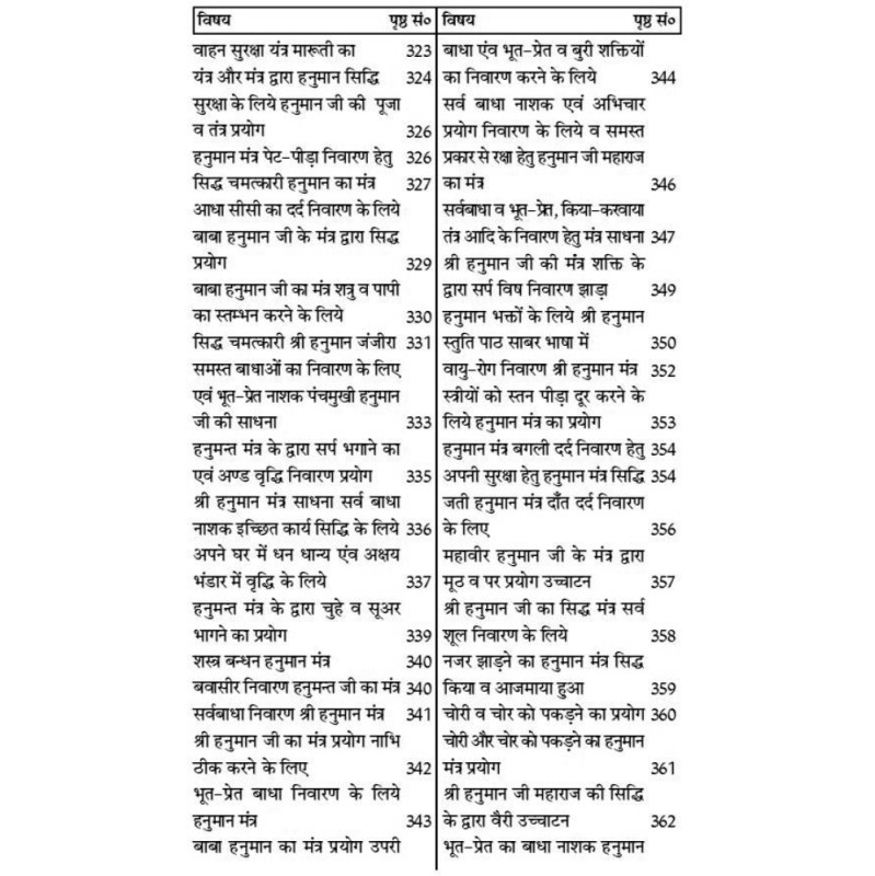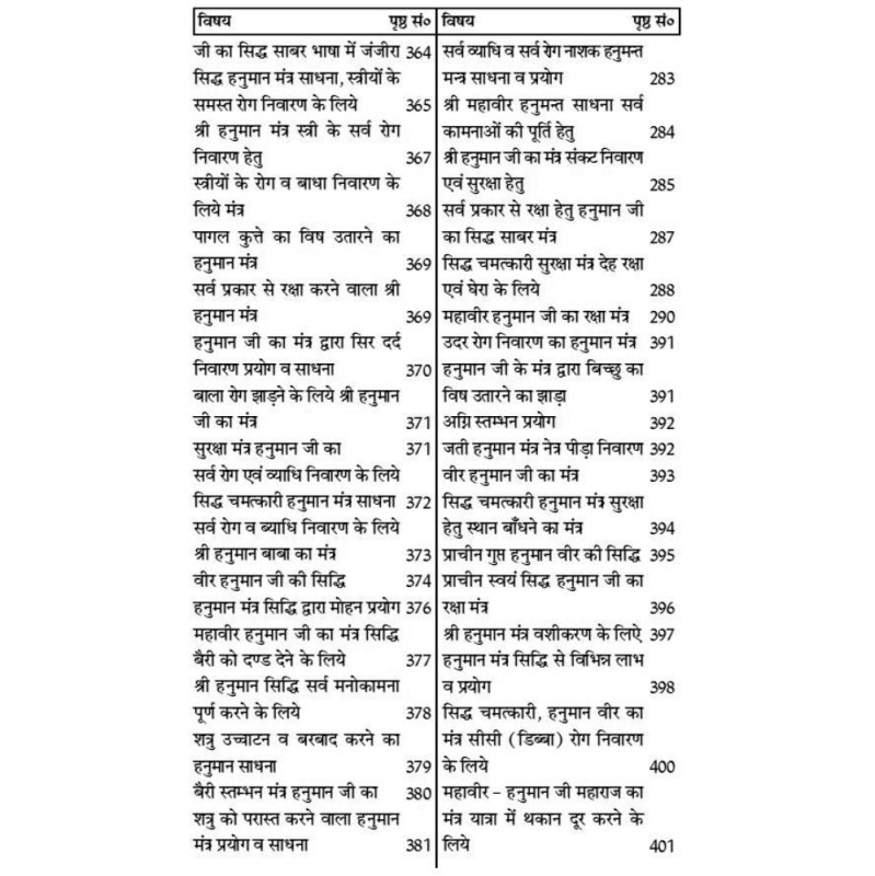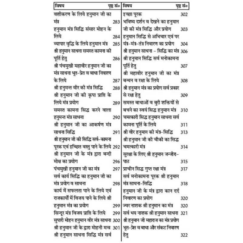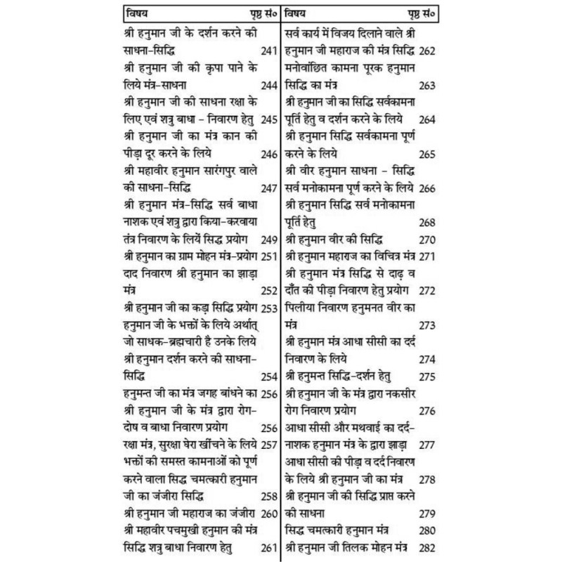 Maha Veer Hanuman Shabar Mantra Siddhi is a pinnacle when it comes to Shabar Mantra of Shri Hanuman Ji. The book has Hanuman Janjeera Prayog, Hanuman Chalisa Anushthan and Prayog, Hanuman-Ashtak Prayog, Shri Ram Raksha Prayog, Shri Hanuman Shabar Mantra, Shri Vadvanal Hanuman Stotra Prayog, etc.