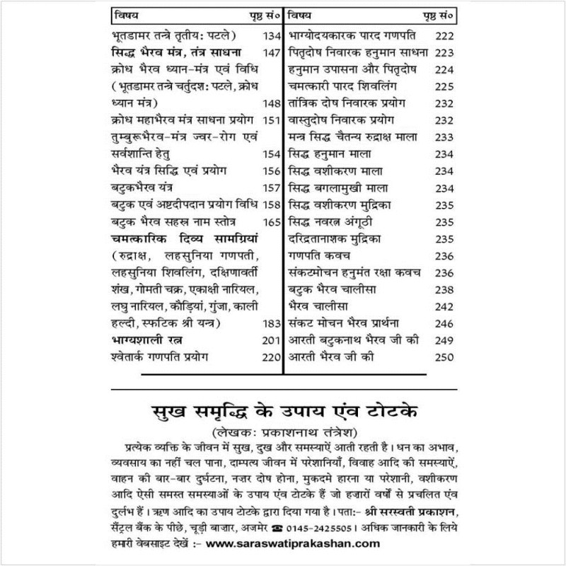 This book, Bhairav Upasana aur Sadhana is of the puja and sadhana of Baba Bhairav, Kaal Bhairav, Batuk Bhairav, Krodh Bhairav, etc. Bhairav Sehesrnaam Stotra, Bhairav Ashtak, Four Patals of Bhoot Damar, Mahakali Dhyaan, Swarnakarshan Stotra, Aakash Bhairav Sadhna, etc. A very good book to have for all Bhairav Yogi.