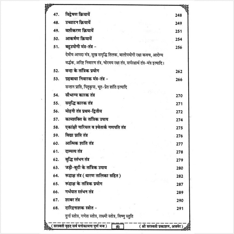 In Chamatkarik Sarva Manokamna Purna Mantra there is a mantra for all purposes. If you want vidya, the knowledge, recite Sarasvati mantra, if you want wealth, worship Lakshmi, if you want help in destroying anything, chant Kali mantra, for help in love matters recite Kama Gayatri, and so on. This book is in hindi with no side effects and gives the complete knowledge of topic.