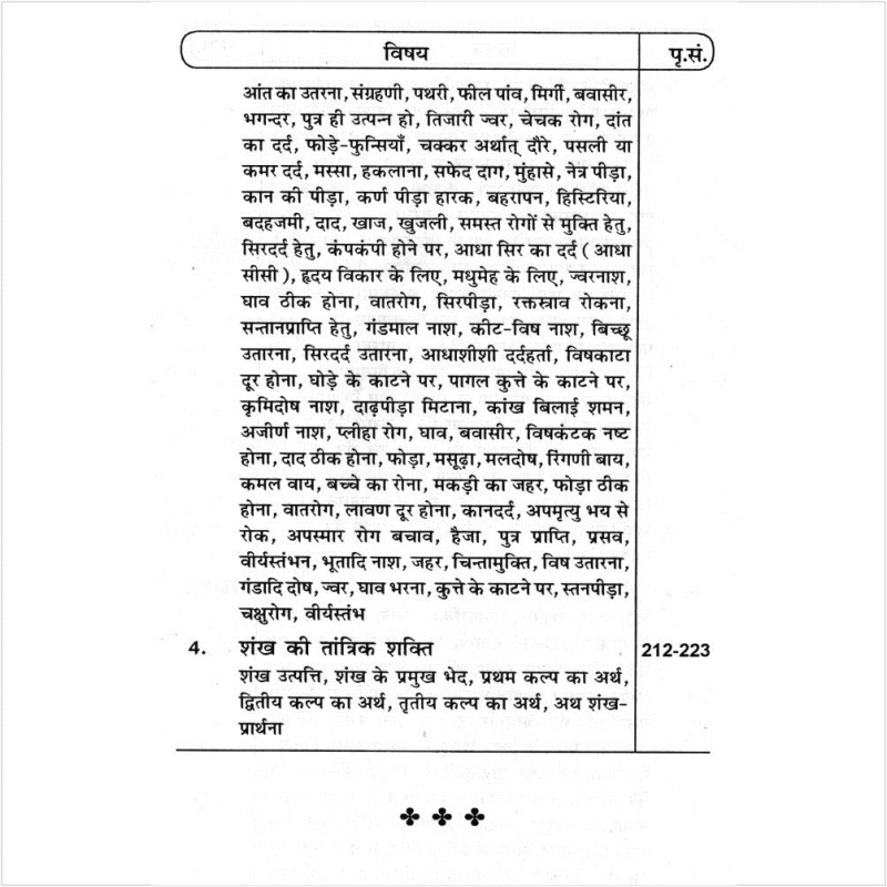 As the name suggests, the book, Gopniya Tantra Mantro Ka Mayajal is of the secret tantra mantra which includes Mantra Sadhna, Siddhi aur Sadhna (Vishnu Sadhna, Ram Sadhna, Agni Sadhna, Surya Sadhna, Krushna Sadhna and many more), Disease removal with the help of Tantra Mantra, Jain Mantra-Tantra, Bhoot-Pret badha remedy, etc.
